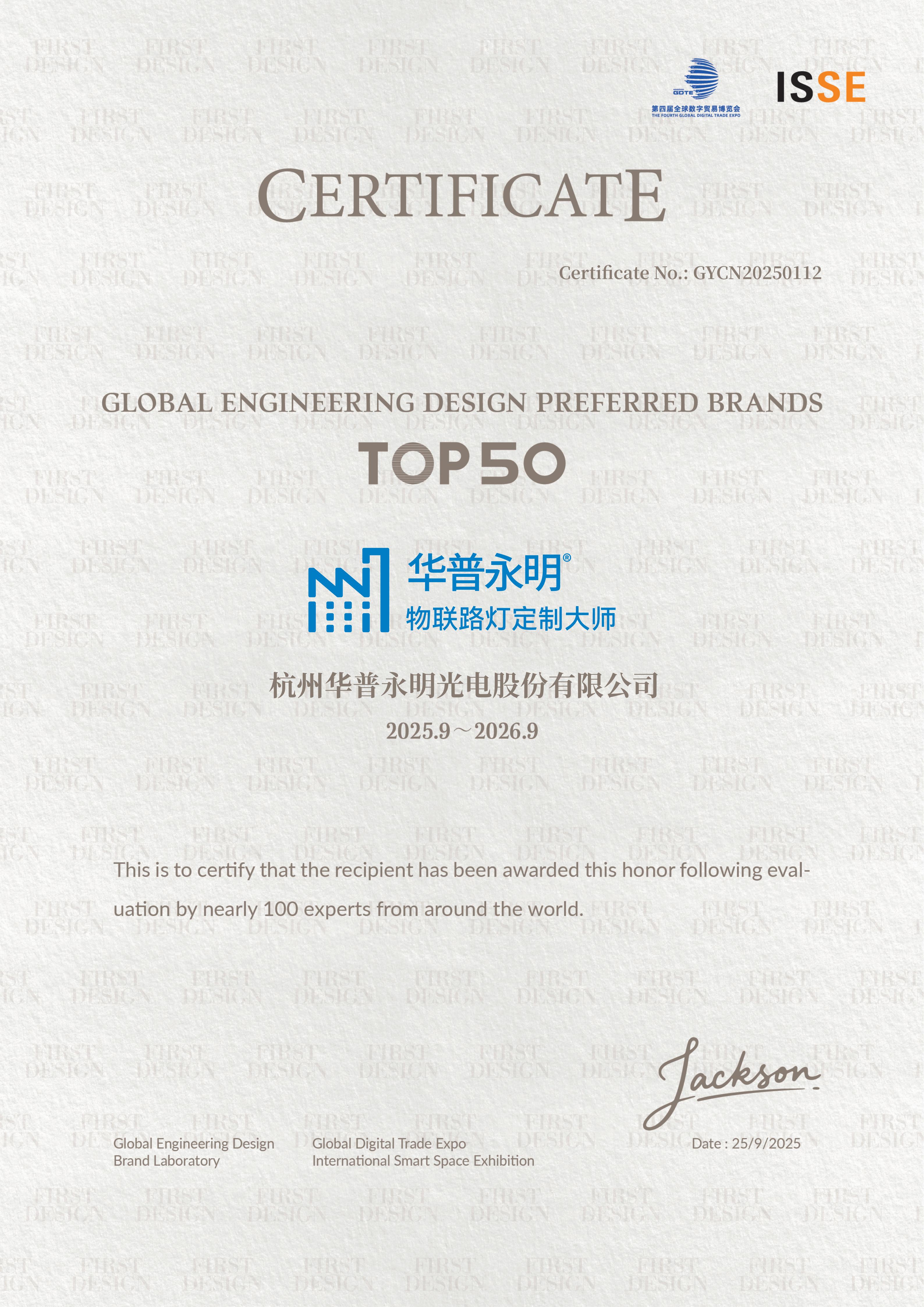 杭州華普永明光電股份有限公司(以下簡稱華普永明)榮耀登榜 "2025全球工程設計優(yōu)選品牌 TOP50",充分彰顯其在專業(yè)室外照明領域持續(xù)引領行業(yè)創(chuàng)新的硬核實力。
